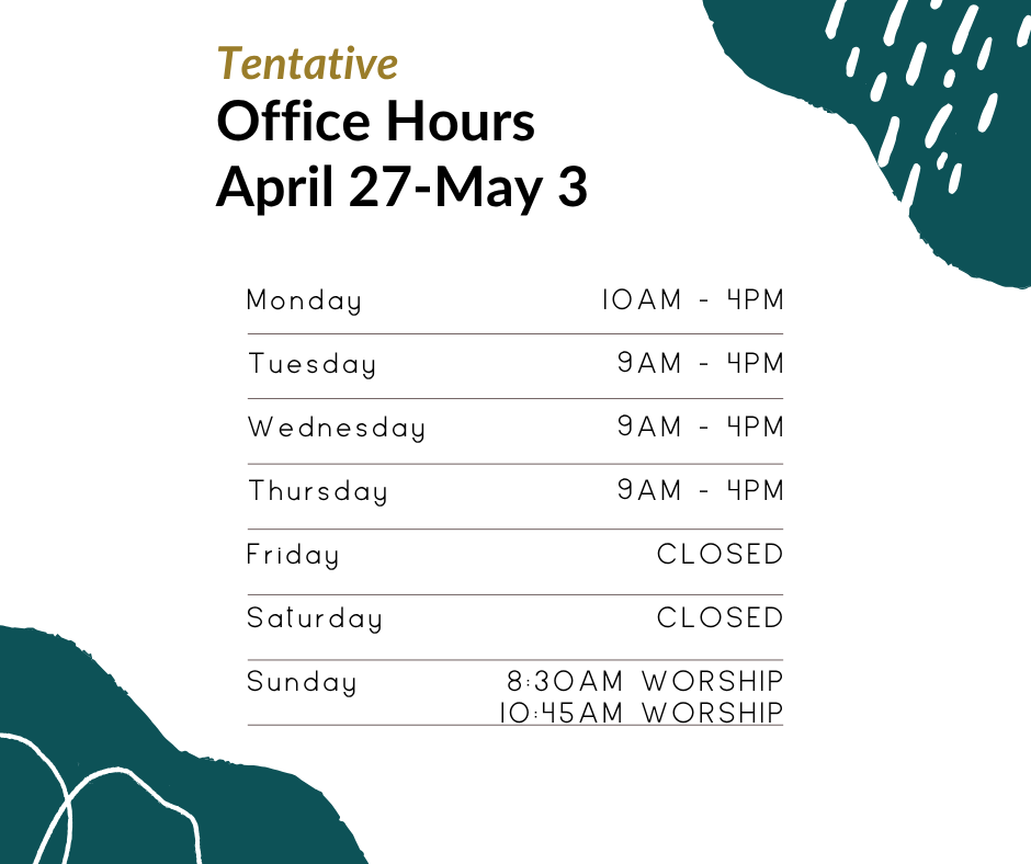 The Prince of Peace front office is open Monday – Thursday; 8:30am – 4:00pm.