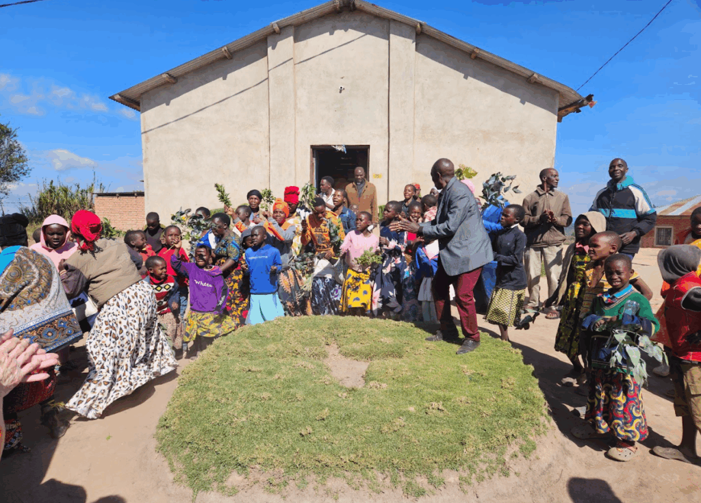 We were met close to Bomalang’ombe by church members greeting us with singing, flowers and branches! One we arrived we were met with more singing and dancing before going into the pastor’s house for tea.