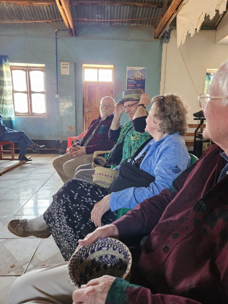 Before lunch we met with the widows group that is raising goats and making baskets. The project is going well for them! They are experimenting with a new type of basket that can be a hat!