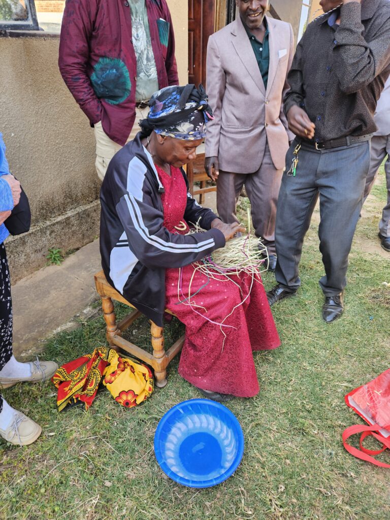 The women’s economic group was next. They make batiks and are now raising a cow. We shared with them a thank you gift of candles from Settled. We had a chance to see a basket making demonstration and then went for a visit to see a few of the goats being raised by the widows. The goats are used for milk.