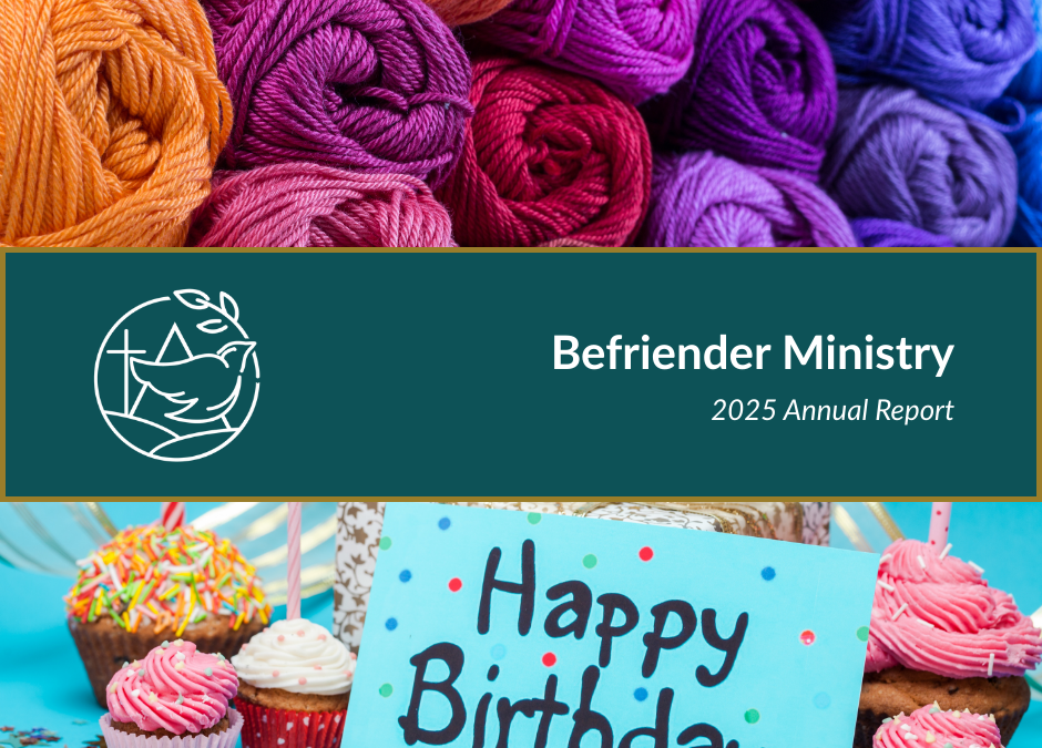 The Befriender Ministry includes several ongoing projects: Befrienders make home visits, Christmas greetings and Easter greetings are sent to the homebound, birthday greetings are sent to those 80 and over, prayer shawls are made and given out, and there is a Befriender resource shelf in our church library.
